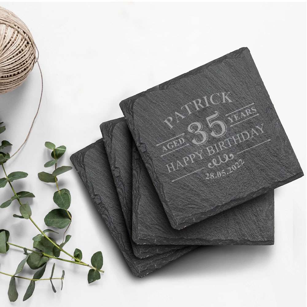 Personalised Laser Engraved Aged Slate Coasters